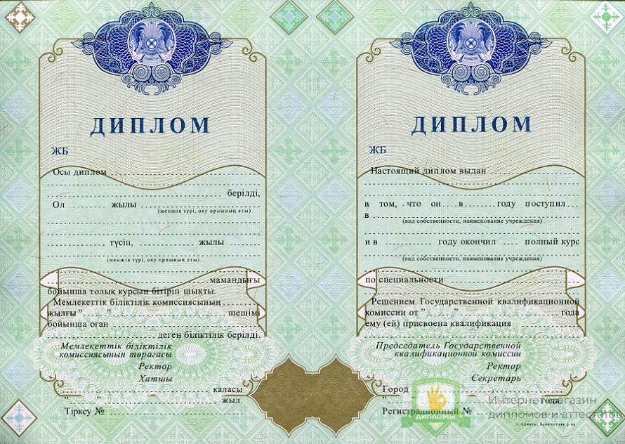 Прибрести диплом ВУЗа Казахстана 2000 - 2010 год вы можете в компании «ОК-Дипломы». Работаем на профильном рынке более 20 лет, предлагая клиентам высококачественный сервис и разумные цены. У нас диплом ВУЗа Казахстана 2000 - 2010 год выполняется на оригинальном бланке Гознак, дополняется подлинными подписями и печатями.