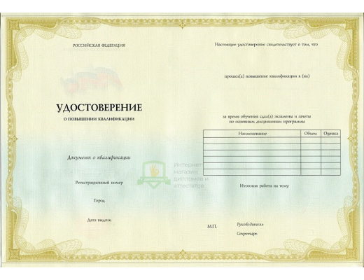 Если вы планируете купить удостоверение о повышении квалификации 2013 - 2026 год, не сомневайтесь – получаете подлинный документ, который заполняют профессионалы, имеющие многолетний опыт работы в сфере образования. Документ на 100% соответствует всем требованиями Министерства науки Российской Федерации.